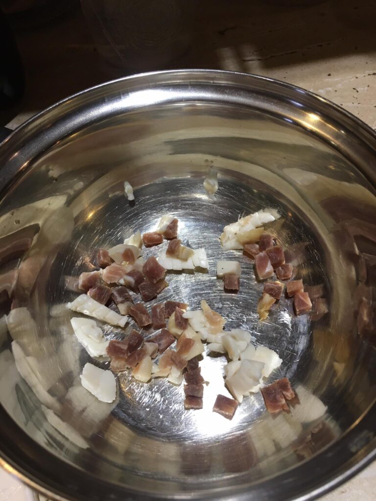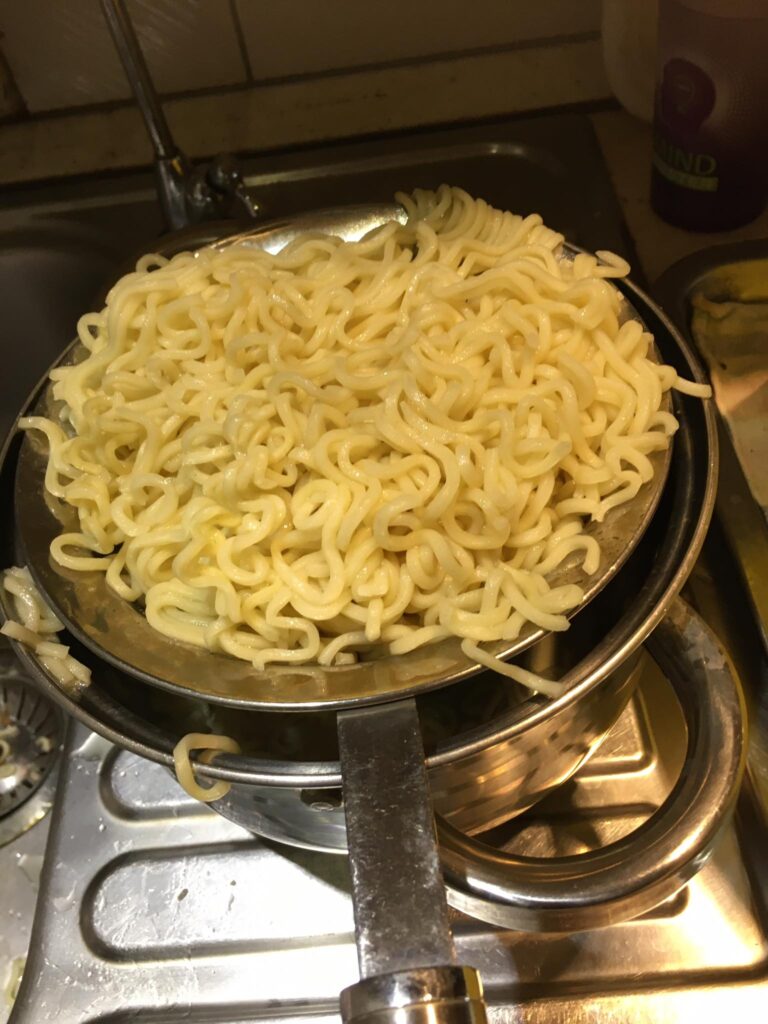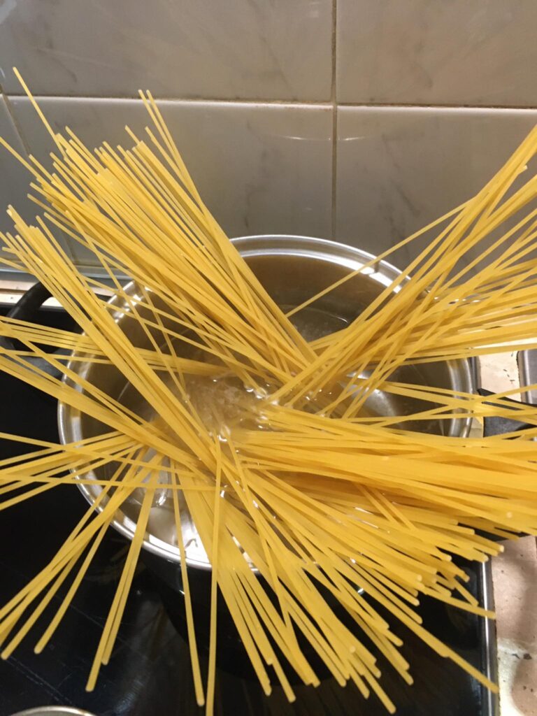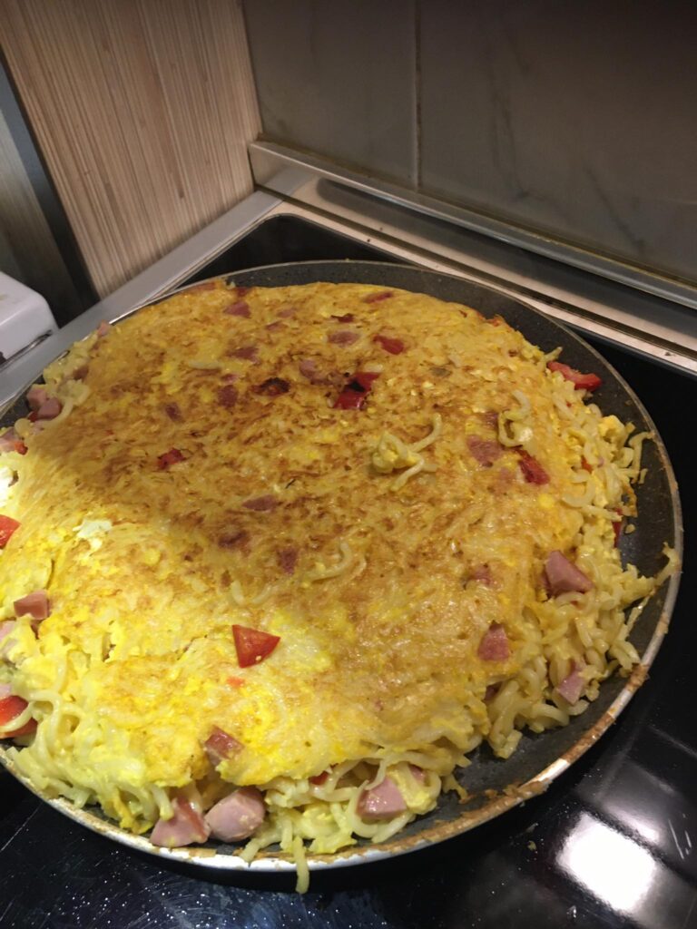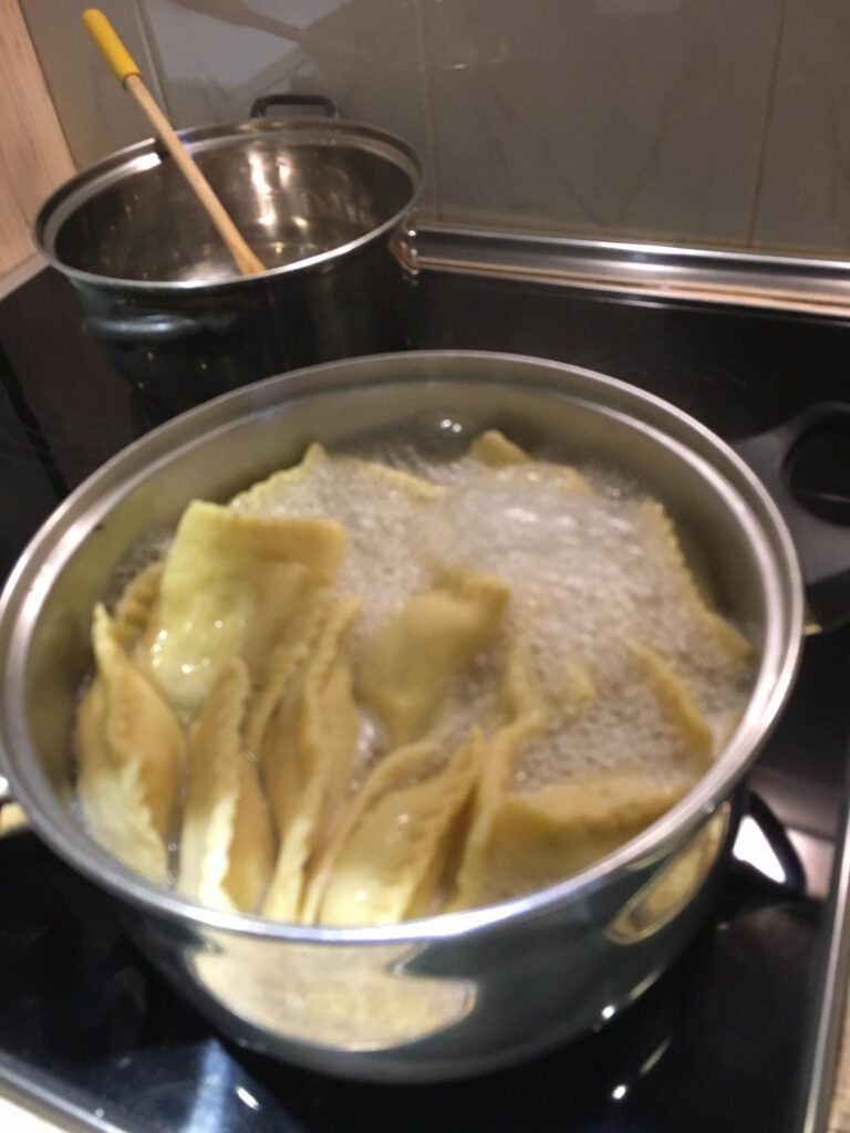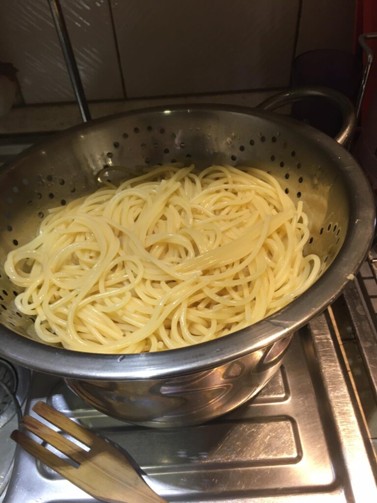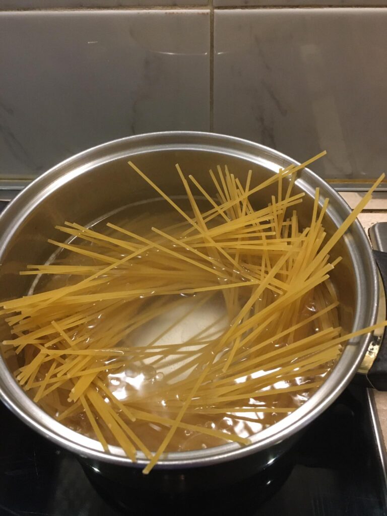 A darált húst megdinszteljük olajon, a bolognai öntetet vízzel kikavarjuk, majd leöntjük vele a húst. A tejfelt kikavarjuk a tojásokkal. Majd megtöltjük vele a csőtésztát. Ha marad hús, akkor belekeverhetjük a tejfeles öntetbe.