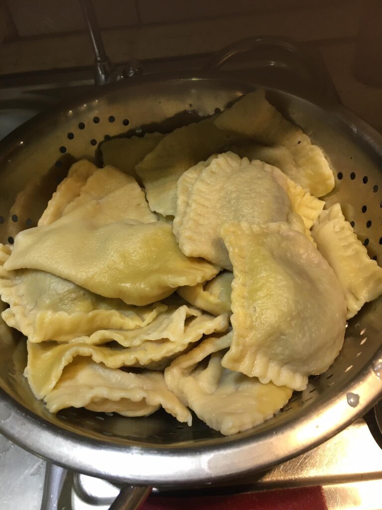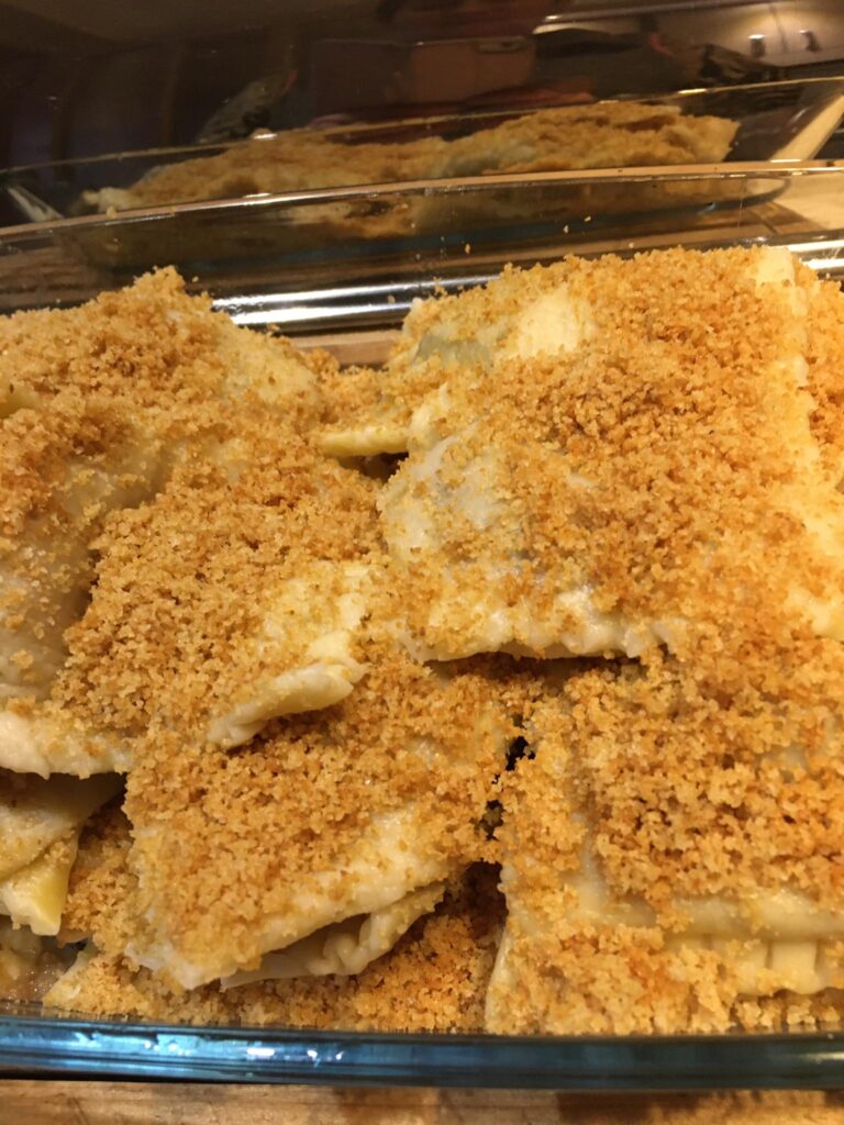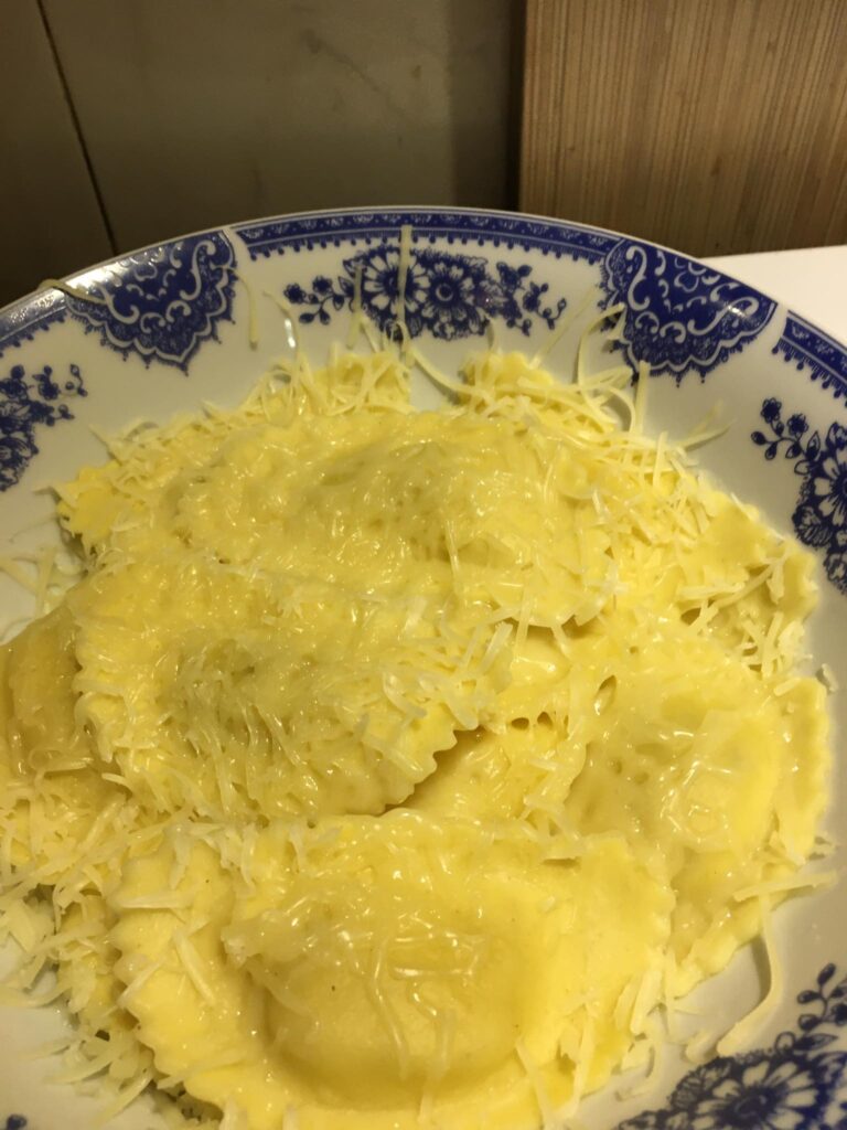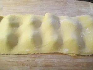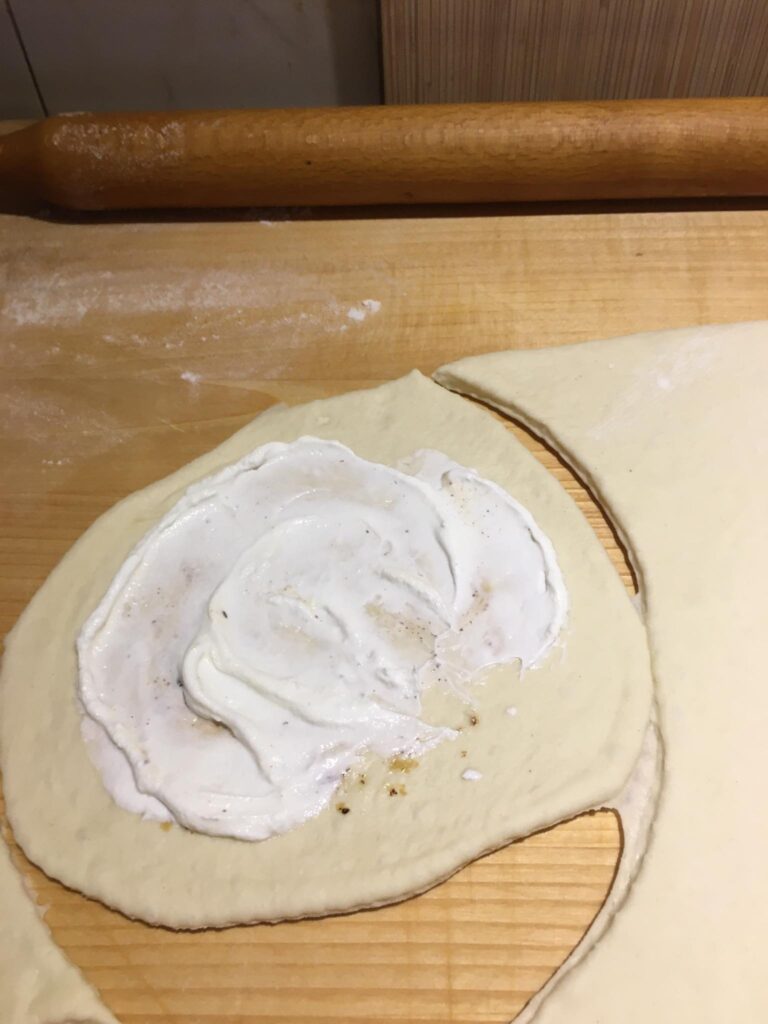 Egy jénai vagy bármilyen tepsit megkenjük a tejfeles öntettel, majd a megtöltött cannelonit megforgatva sorba rakjuk benne. Ezután leöntjük a tejfeles masszával, lefedjük fóliával és a sütőbe tesszük. Mikor már megpuhult a tészta, akkor sajtot szórunk rá és 5 percre visszatesszük a sütőbe.